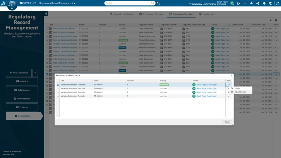 Functional Value Manage Regulatory Submissions Templates and Submissions to compile detailed dossiers based on submission types User Experience Value Enhance Widget UX to manage and prepare planning, scheduling for dossiers preparation I Revise Submission Template