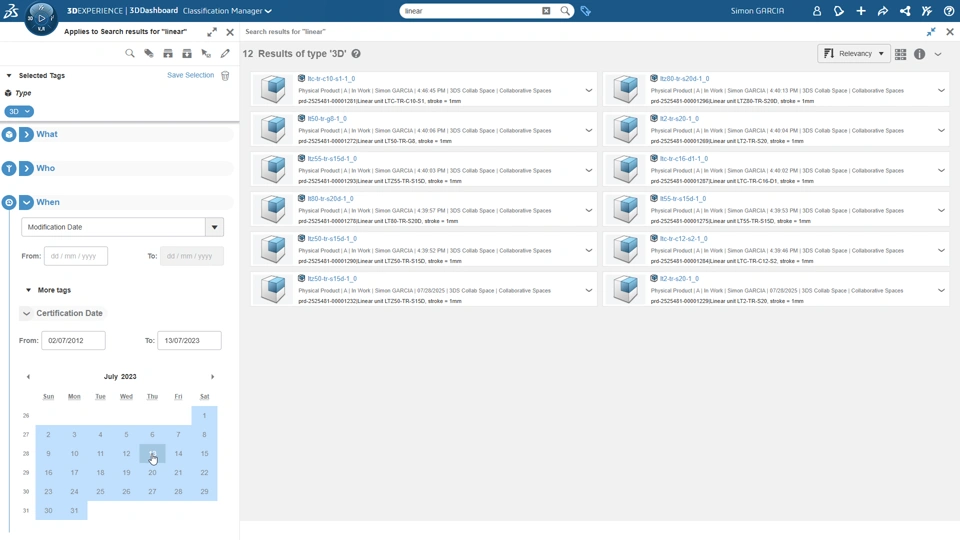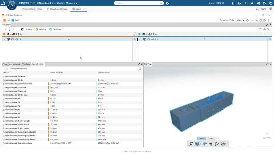 User Experience Value Classification attributes management is enhanced with new capabilities to - manage authorized value over time. Authorized value can now be removed. - expose integers, real numbers, and dates attributes types in the 6WTagger to enrich data refinement scenarios. For users of classified content, 3DCompare application now support classification paths and attributes to perform exhaustive data comparison. I List of authorized values for classification attributes can be