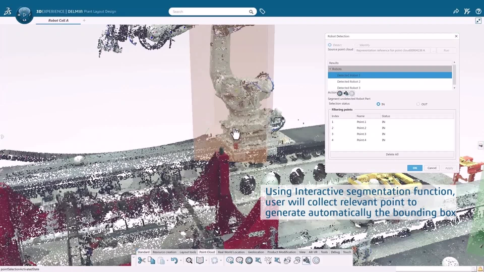 Functional Value - Improve accuracy and completeness of robot identification in a factory scan data by providing a 'Manufacturer' and 'Application' filters to refine AI recommendations. This functionality reduces manual intervention, accelerates workflow, and minimizes the risk of errors associated with automatic robot identification. I Usability Improvements To Robot Identification I Move Multiple Point Clouds