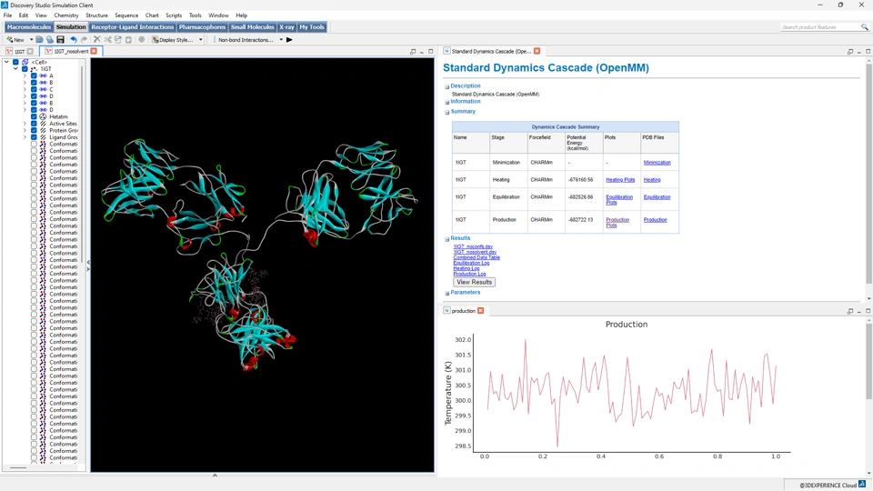 User Experience Value In Discovery Studio Simulation, users will be able to run accelerated molecular dynamics with OpenMM molecular dynamics simulations, and type systems with OpenFF force fields. Users can calculate binding free energies with a new free energy perturbation protocol based on OpenFreeEnergy. I I Run faster molecular dynamics with the standard dynamics cascade with GPU acceleration using OpenMM I Generate different FEP ligand network graphs for relative free energy
