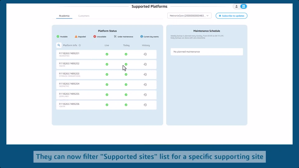 Dear users, The update operation is completed on the ACADEMIA 3DEXPERIENCE platform. See the details below to know your platform current status. Platform ImpactedACADEMIA Regions Affected by UpdateEUROPE INDIA SINGAPORE CHINA JAPAN AUSTRALIA US-EAST US-WEST Platform Current Status EUROPE (Paris Time)JAPAN (Local Time)CHINA (Local Time)Current status: update operation complete - September 13th – 16:00 Current status: update operation complete - September 13th – 23:00 Current status: