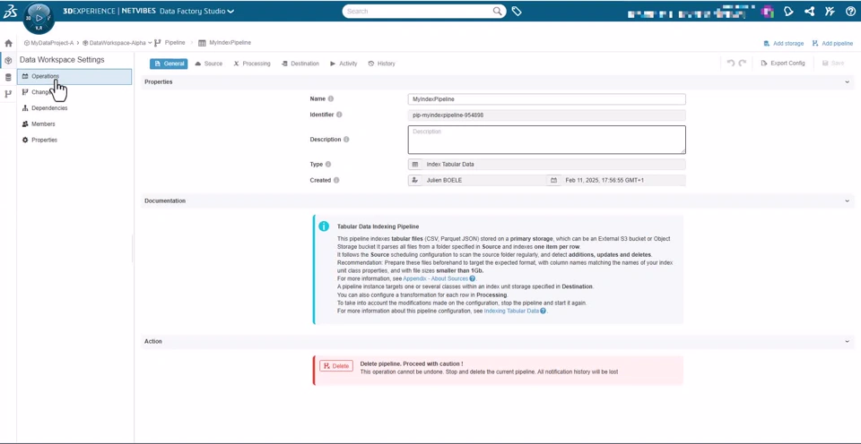 Functional Value - Manage user and user group to perform action on Data Projects - On Premise 3D Navigation and Insight Visualization on Virtual Twin at the speed of light User Experience Value - Permissions management at Data Project - 3D Navigation and Insight Visualization on Virtual Twin at the speed of light I Data Factory Studio now requires to create a Data Workspace, which is a Data Project instantiation, to configure resources (storages, pipelines). In a Data Project, you