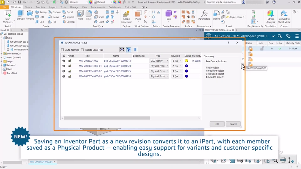Functional Value Facilitate design flexibility and scalability by enabling type conversion to Families on save to the Platform. What's New R2025xFD04 I Physical Product to CAD Family type conversion on Save to support Solid Edge Family of Assemblies
