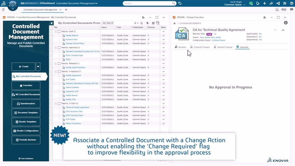 Functional Value Support Document Implementation, Hard Copy Management, automatic release of Controlled Documents based on effectivity rules User Experience Value Introduce an ability to manage Document Implementation and Hard Copy Management I QUC-Whats New - R2025x_FD04