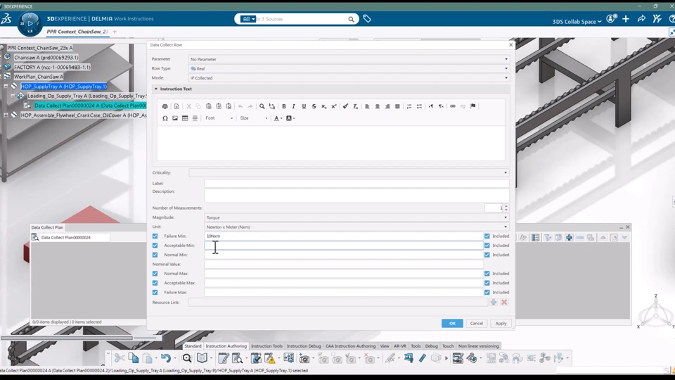Functional Value Standardized textual instructions leveraging design engineering specifications I Support Criticality & Edge of Failure in Data Collect Plans I In addition to existing ranges that can be specified on a Data Collect Plan, user can specify an additional range (Minimum and Maximum Failure values) I For a Data Collect Plan row, user can specify the "criticality level". It categorizes how important a parameter is to maintaining product quality and consistency