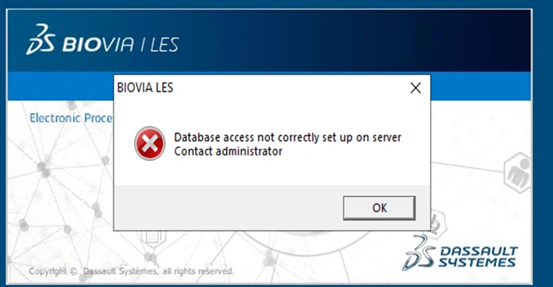 LES: When launching LES, the user is getting “Database access not correctly set up on server. Contact administrator”