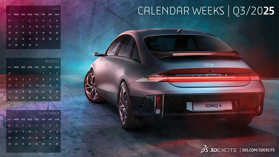 Enjoy our new desktop wallpaper for Q3 - featuring a rear view of the new Hyundai IONIQ 6, rendered with DELTAGEN 2025x!