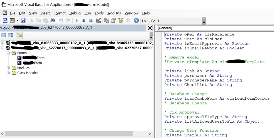 • We are using VBA Macros with forms in our system as shown below. For 90% of the users, everything works fine, and we haven't done any changes for a long while. For some reason though, it fails on some users with the following error messages. Everyone is using the same "Released" macro.