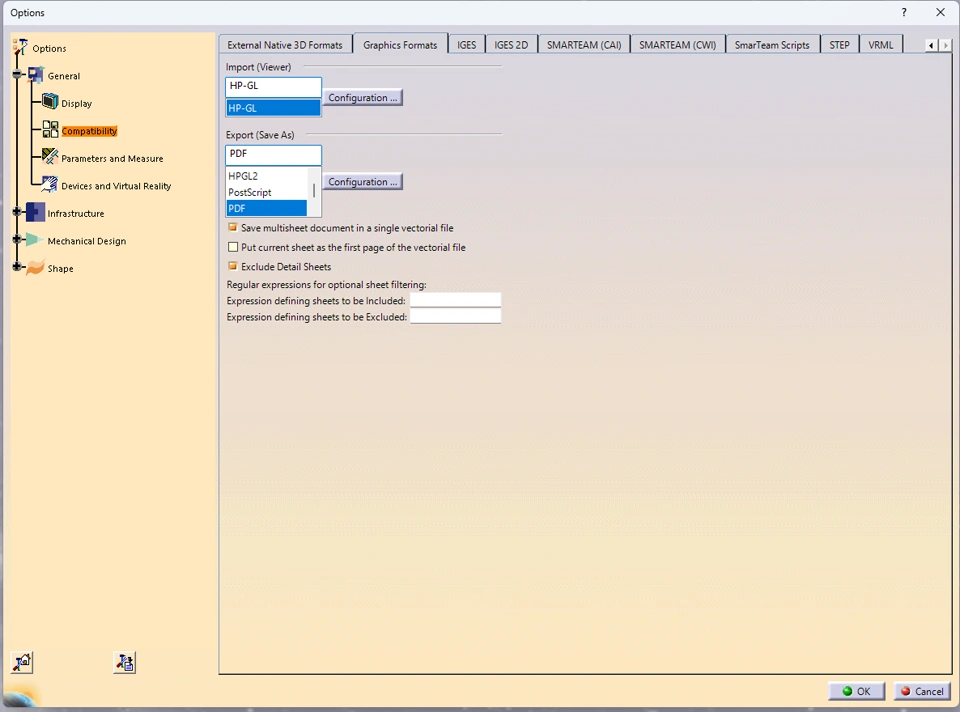 Hi, I have been tasked with investigating our export PDF settings. My problem is settings for monochrome, I can find them in Print... > Options but not in Graphics Format under Tools. Some documentation points to a Parameters option under Graphics Format, I can find it there in 3DX CATIA but not in V5. MS CoPilot suggests I should have a Print category under Tools>Options>Mechanical Design>Drafting but I do not. What am I missing?