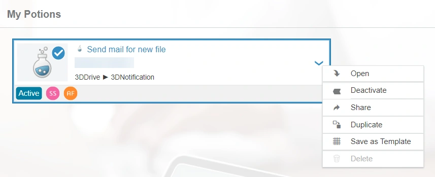 In addition, you can share a potion directly from a potion tile by using the Share command.