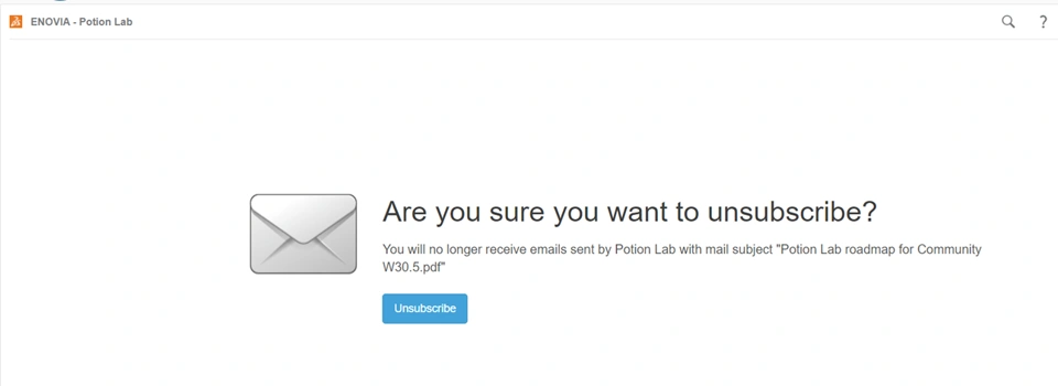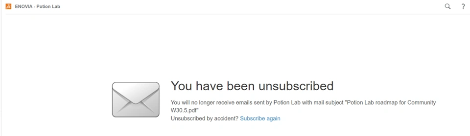 Recipients of emails delivered by potion actions can unsubscribe themselves from individual notifications by clicking the unsubscribe link sent in the notification.