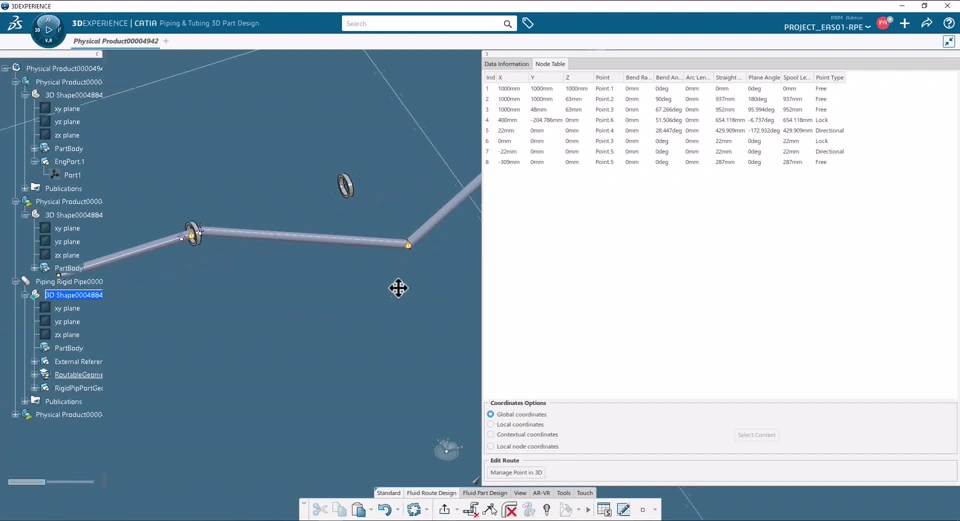 Following videos illustrates how to route a pipe and to create "Lock" node that will not be any more free for manipulation with 3D piping manipulator.