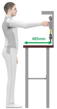 To have a safe and efficient design, your worker should reach objects within 485 mm of distance.