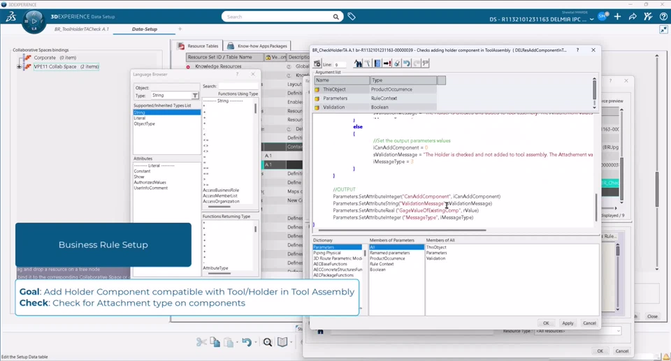 This document is intended to provide a detailed guide and examples on how to customize the Business Rule that checks the compatibility of holder component with tool/holder from tool assembly while adding it to the tool assembly.